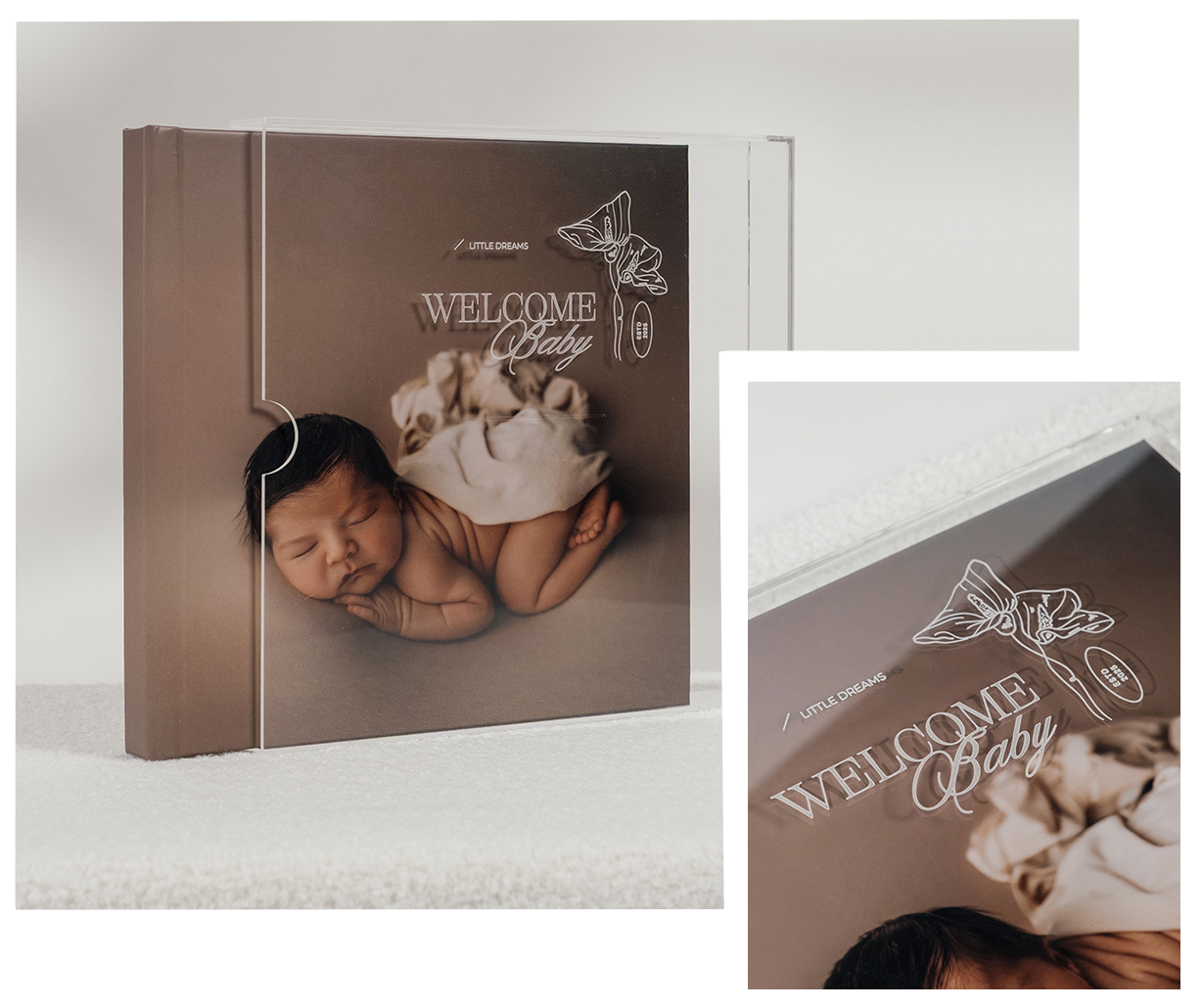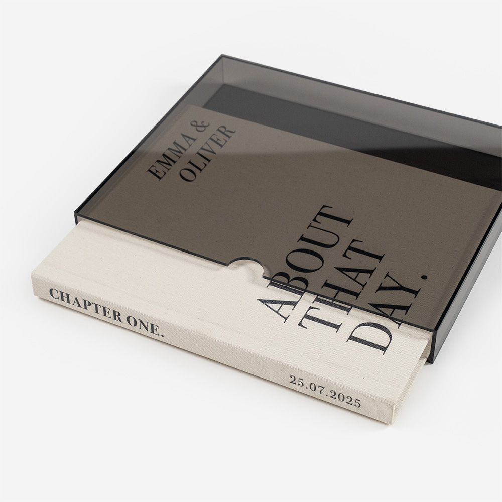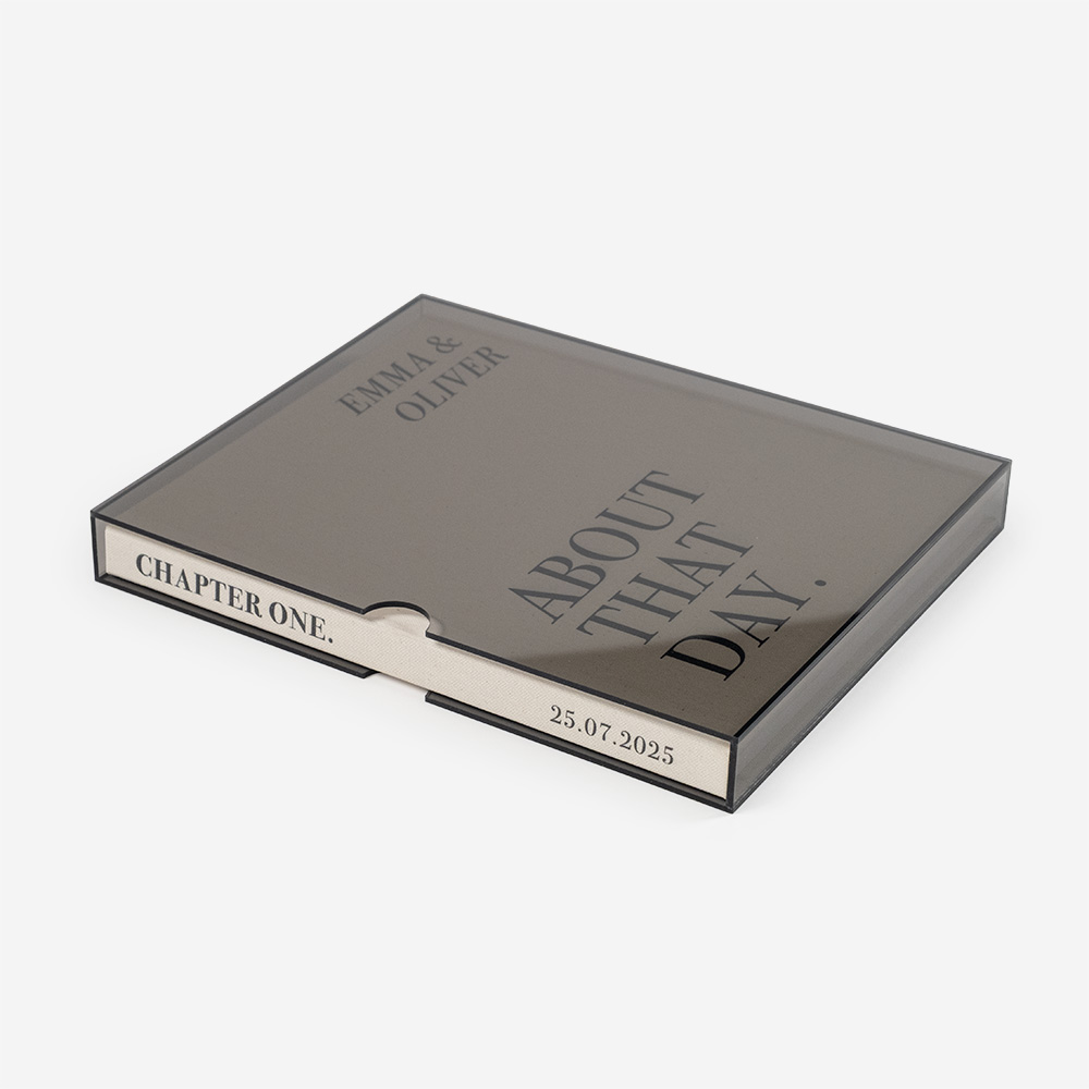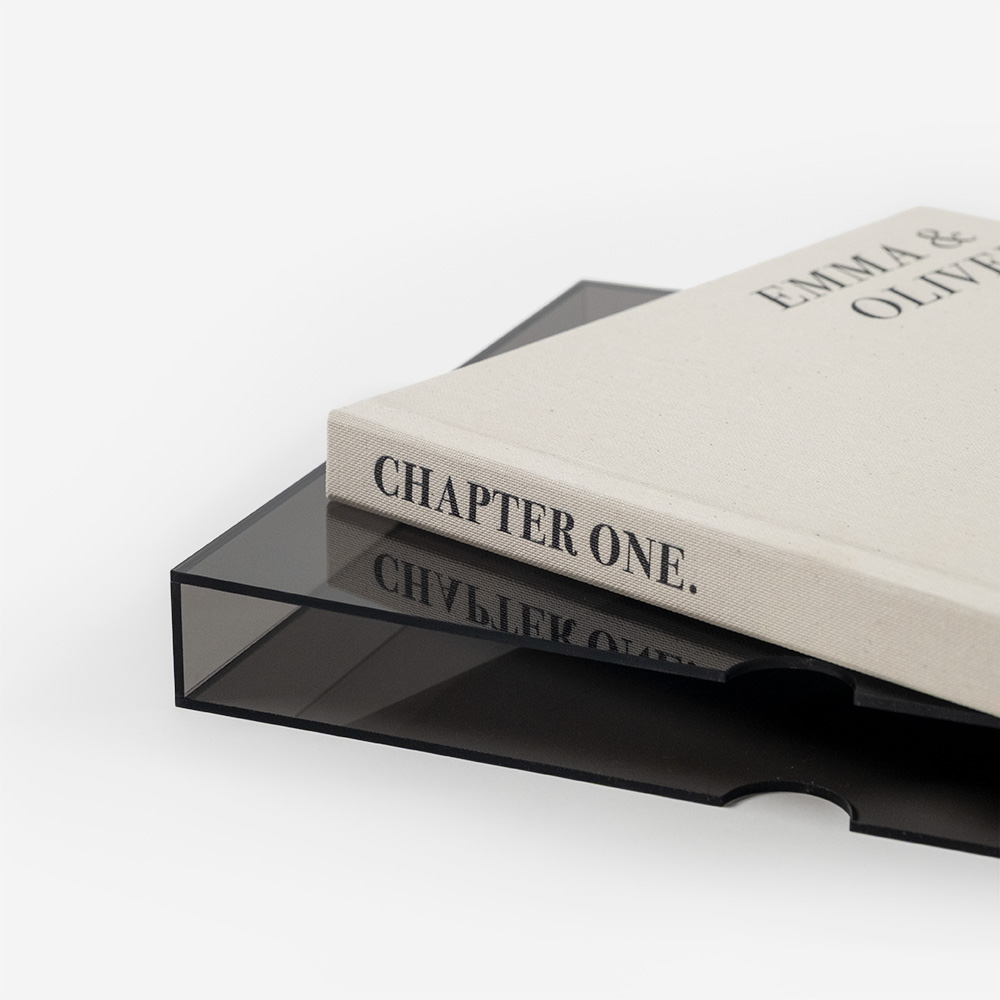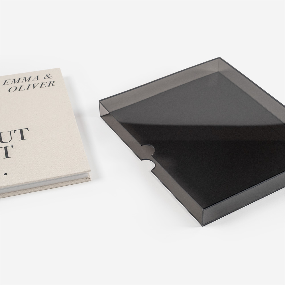 Acryl ist ein widerstandsfähiges, elegantes und vielseitiges Material, das deine Produkte schützt und aufwertet. In verschiedenen Ausführungen erhältlich, passt es sich unterschiedlichen Stilen an: farblos betont Reinheit und Transparenz, und farbig verleiht einen Hauch von Raffinesse, die jedes Album zu einem einzigartigen Stück macht.